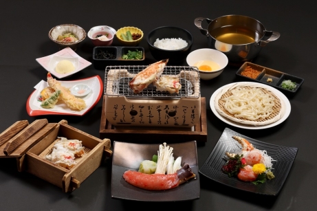 ・活毛蟹は500gまたは600g(お一人様半尾)、たらば蟹の炭焼、たらば蟹とずわい蟹のしゃぶしゃぶ、揚物はずわい蟹の天ぷらに~