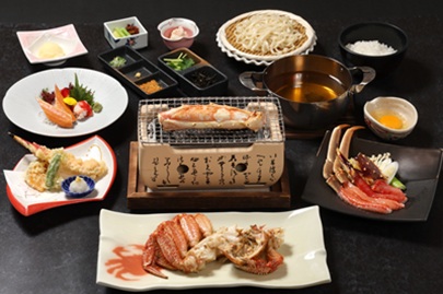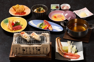 ・活毛蟹は500gまたは600g(お一人様半尾)、たらば蟹の炭焼、たらば蟹とずわい蟹のしゃぶしゃぶ、揚物はたらば蟹の天ぷらに~